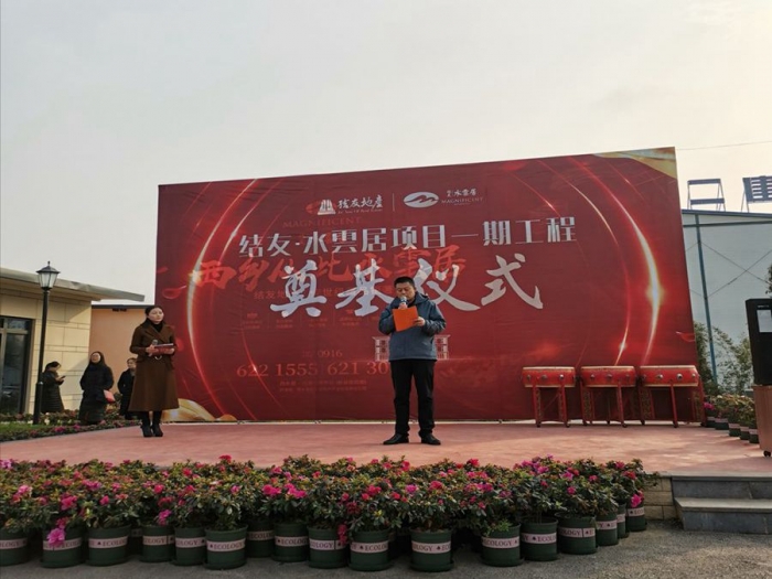 公司總經(jīng)理張小揚、副總經(jīng)理申小龍、總會計師嚴海軍、市場經(jīng)營部經(jīng)理蘭永輝及西鄉(xiāng)水雲(yún)居項目部全體員工參加開工奠基儀式。