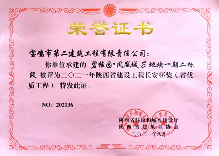 2021年陜西省建設(shè)工程長安杯獎(jiǎng)(碧桂園?鳳凰城E地塊一期二標(biāo)段)
