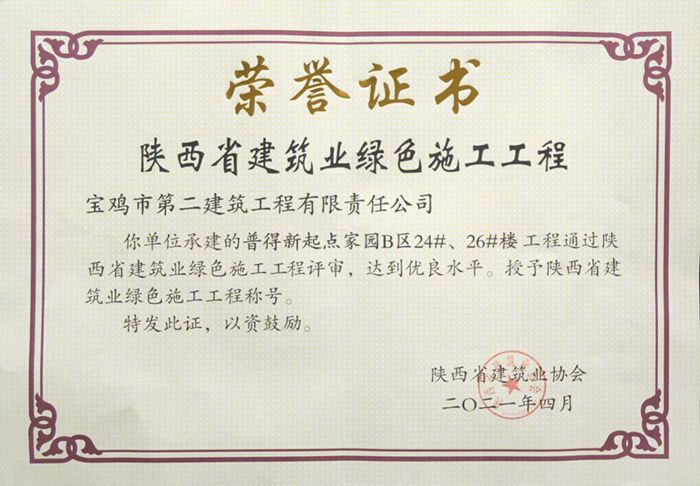 2021年陜西省建筑業(yè)綠色施工工程(普得新起點(diǎn)家園B區(qū)24#、26#樓工程)