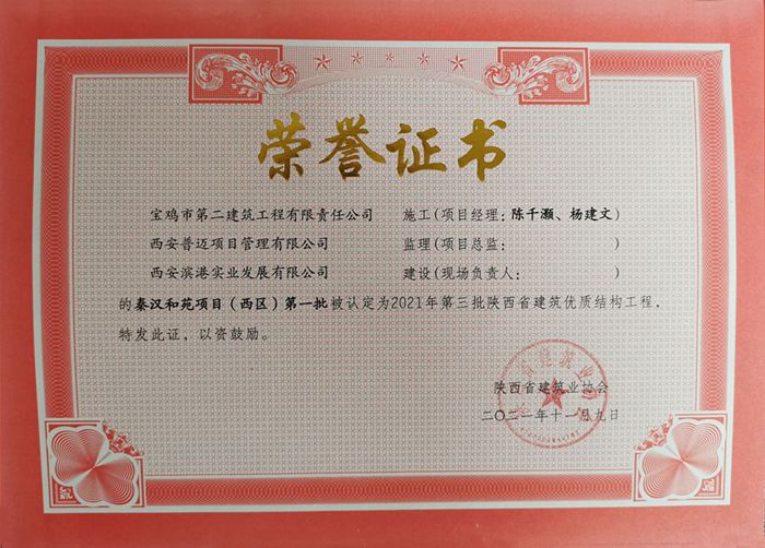 2021年度陜西省建筑優(yōu)質(zhì)結(jié)構(gòu)工程(秦漢和苑項(xiàng)目(西區(qū))第一批)