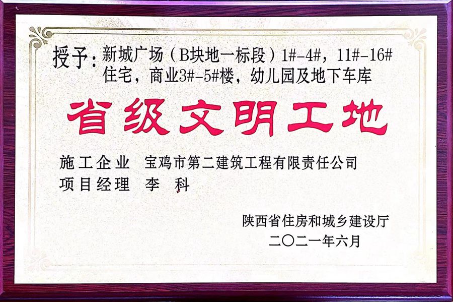 2021年省級文明工地(新城廣場(B塊地一標(biāo)段))
