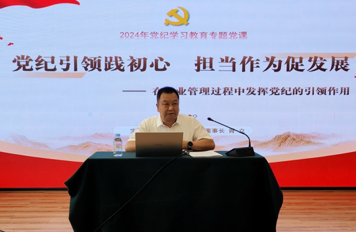黨委書記、董事長胥立講授題為《黨紀(jì)引領(lǐng)踐初心 擔(dān)當(dāng)作為促發(fā)展》的黨紀(jì)學(xué)習(xí)教育專題黨課。他從認(rèn)識黨紀(jì)的重要性、深學(xué)細(xì)悟“六項紀(jì)律”、加強(qiáng)黨紀(jì)建設(shè)的要求、在管理中貫徹黨紀(jì)的思考和實踐四個方面進(jìn)行了講解,并與現(xiàn)場人員進(jìn)行了互動交流。